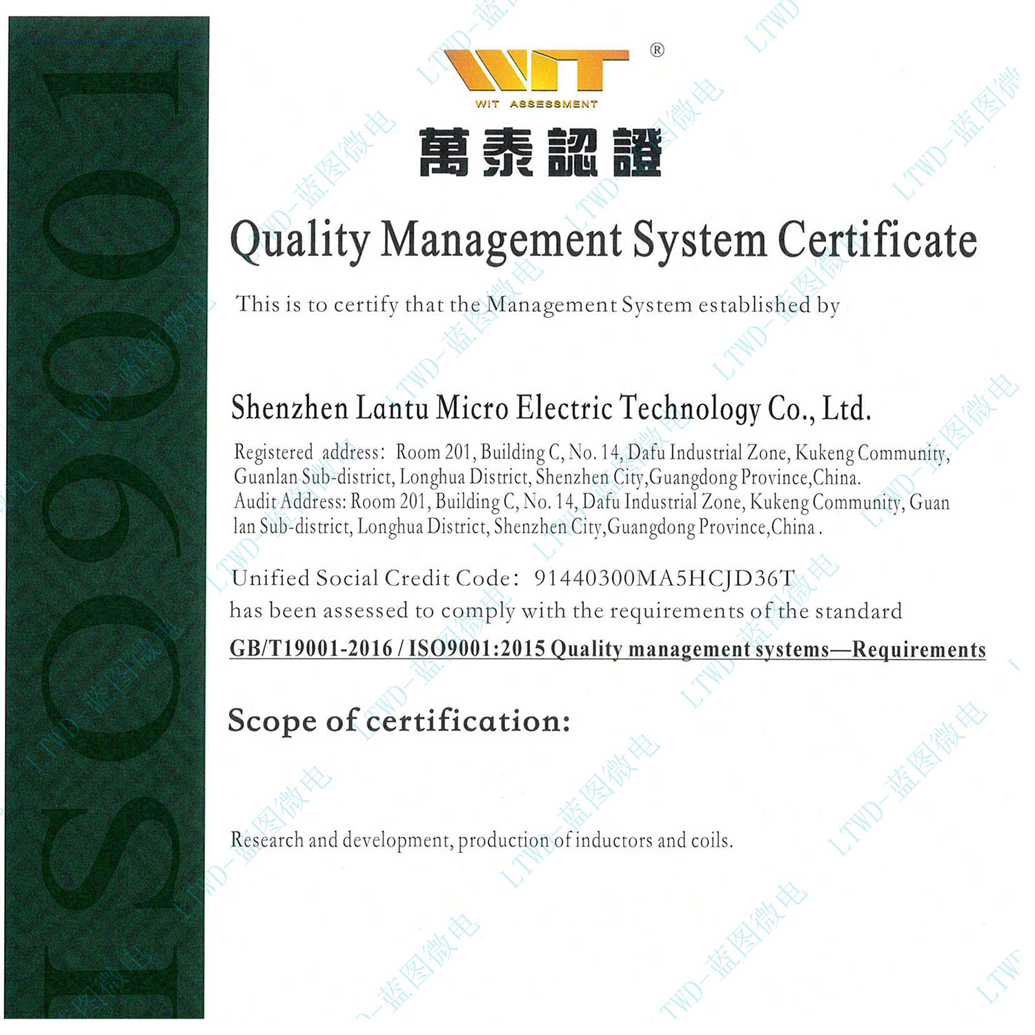 熱烈祝賀深圳藍圖微電科技有限公司通過ISO9001質量體系認證